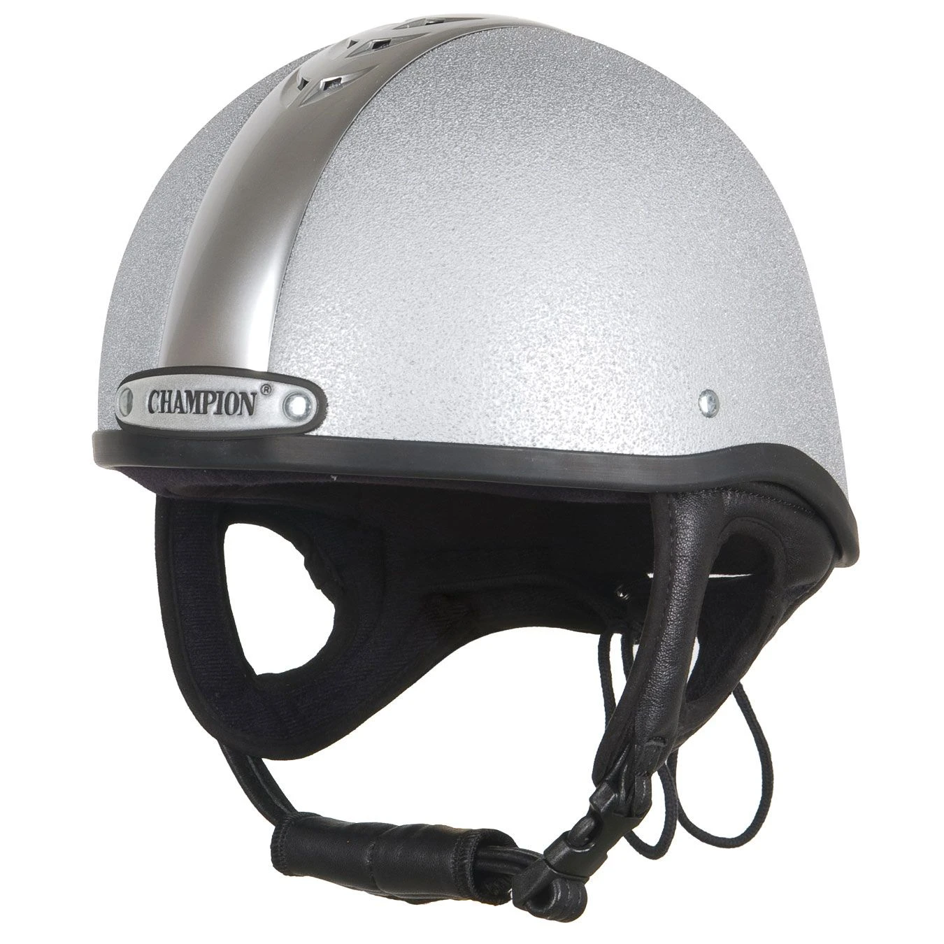 The combines both modern style and practicality. This low profile and lightweight helmet sports a striking silver stripe through the centre. The glass fibre shell incorporates a unique ventilation system to maintain temperature control and achieve maximum comfort, promoting airflow to your head at all times. The padded leather harness with lace adjustment at the rear makes this helmet both comfortable and secure for the rider.
