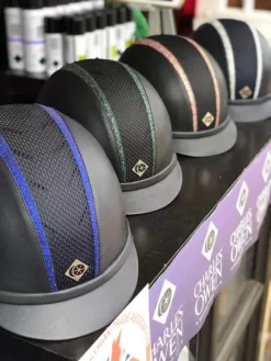 Charles Owen AYR8 Plus Trim Riding Hat is a Special Order Item. It can be custom designed by you to get that individual look. There are plain, sparkly and snake skin trims which are available in a wide range of colours. You can then select any colour piping to run down the side of the trim plus you can pick paint colour and mesh colour to create a truly custom hat.