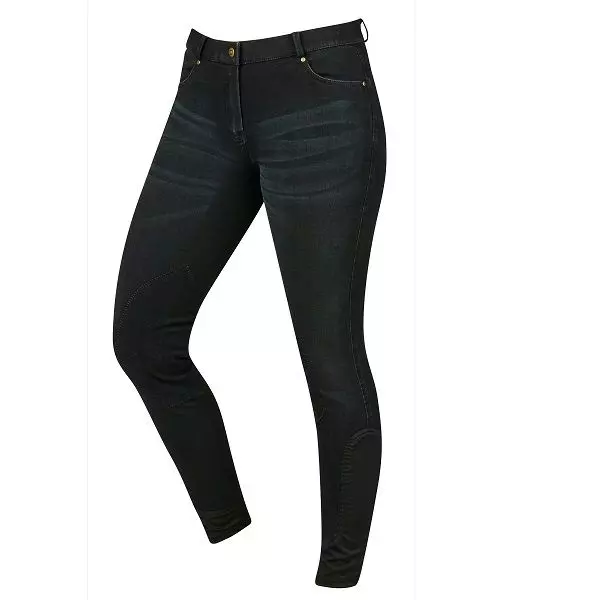 The Dublin Shona Denim Breeches are made from two way stretch denim fabric which offer compression and coverage, with contrast suede knee patch and belt loops for a stylish riding look. Features a front zip closure, 4 pockets, and a mid-rise no gap waistband.