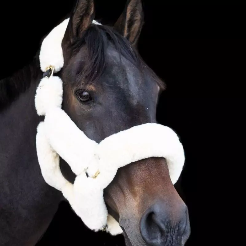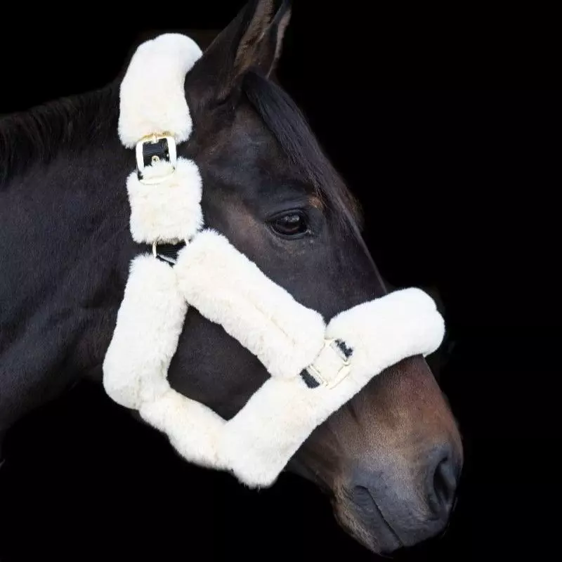 Stand out from the crowd with this luxurious fluffy headcollar. Made with the finest brass fittings with a luxurious synthetic lambswool padding this iss perfect travelling headcollar.