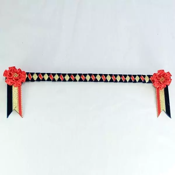 ½” English leather with Velvet/Satin and metallic ribbon complete with rosette and flag