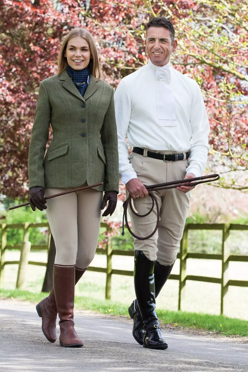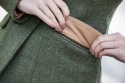 The is an exquisitely made Pure Wool green herringbone tweed riding jacket with timeless Brown and Canary over checks. It cleverly incorporates flap pockets with concealed zip pockets and is made from 720g Pure New Wool, with sizes up to a 48” as standard, ensuring optimum seam positioning to flatter all figures. Teflon® coating for shower proof finish it also has Equetech rich gold jaquard lining