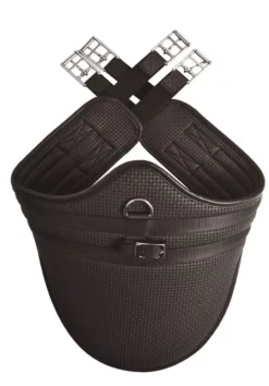 Designed for monoflap saddles, or saddles with long girth straps, the HyCOMFORT Waffle Stud Girth is specially shaped to not pinch or hinder your horse’s movement. Designed to sit in the correct position, without catching the horse behind the elbow, made from soft material with rounded edges this girth provides the ultimate in comfort. The broad belly pad provides protection, complete with a martingale attachment and ring. Stainless steel roller buckles make it easy to do up the girth but elastic at both ends prevents over tightening. Easy to wipe clean.