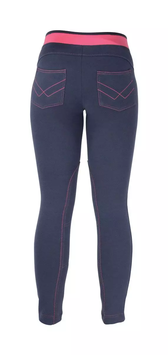 These trendy jodhpurs feature an elasticated waistband, designed for maximum comfort whilst riding. With reinforced fabric from the knee down and two handy front zip pockets.