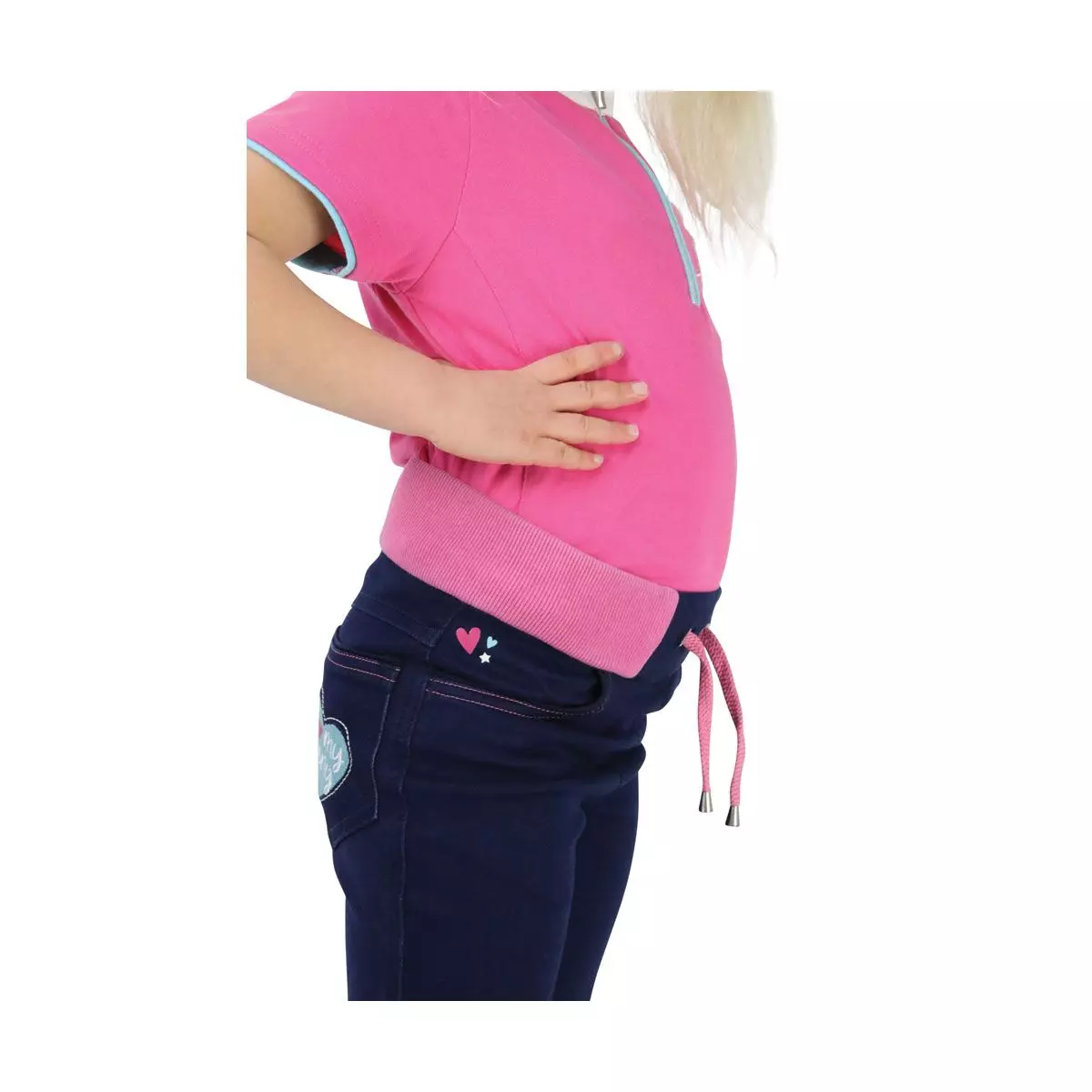 These new riding skins are simply stunning! Designed in dark denim stretch material and elasticated waistband with drawstrings, your child is guaranteed to remain comfortable both in and out the saddle. The silicone heart patterned knees ensure added grip and security when in the saddle. Finished with pink trim, practical pockets and Little Rider and ‘I Love My Pony’ logos and detailing, these are bound to me a hit with your little rider! Match with the ‘I Love My Pony’ collection.