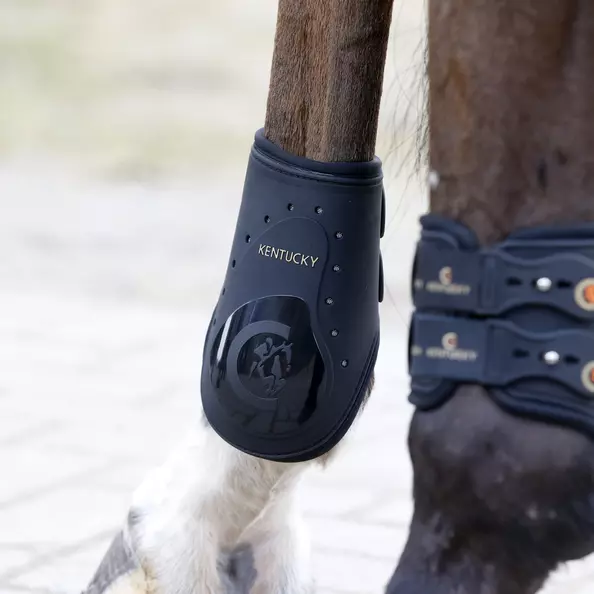 The Fetlock Boots Elastic feature a tough outer shell casing which is styled in an extremely light yet strong TPU to protect against impact, whilst the fetlock area is reinforced with Proteck Impact Gel* for the ultimate protection. Laboratory tests have shown that the boots absorb impact over 50% better than any other boot currently on the market, with the ability to disperse a heavy blow equivalent to that which could actually break a human bone. This fetlock boot also features a higher cut out design than traditional fetlock boots to allow total freedom of movement around the pastern area, when the horse is jumping. Consideration is also paid to give optimum freedom and comfort, so that the horses are able to jump without interference. The fetlock boots feature double elasticated insertion within the strap design. These boots have been developed to cater for those riders who want a boot which offers the ultimate protection yet features this more traditional design. These boots sustain the washing machine at 30°, no dryer. Use our Boot Spray to make them look shiny and brand new!