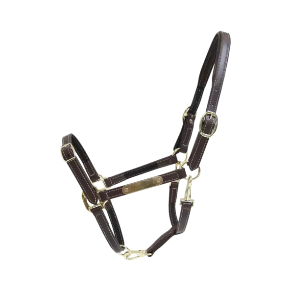 This super practical artificial Leather Halter Flexible can be detached and used in different ways. By removing both clips left and right and the one on the bottom, this halter becomes the perfect grooming halter. It provides two buckles that are attached to the head piece to make it easier to adjust it in size, and to keep the head piece in the middle. Also, an extra small buckle on the noseband makes it easy to put on a bridle over it. The halter is made out of artificial leather which makes it very supple and easy to maintain. There is an extra soft padding on the head piece and a name plate that can be engraved.