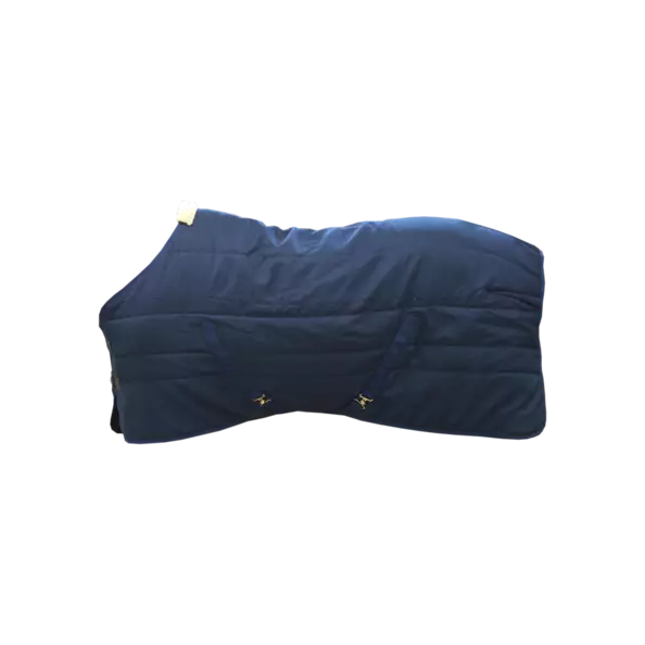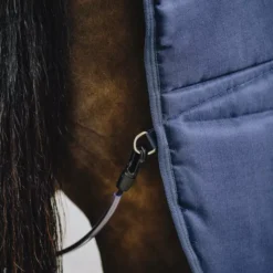 The outside of the stable rug is made of a 900D Ripstop polyester. Ribstop fabric is a fabric that contains reinforced yarn, that makes it incredibly hard to tear the rug. Another benefit of this fabric is that it’s shavings repellent, so you can easily brush hay and straw off the rug. The filling on the inside can be 100g, 200g or 300g, depending on the needs of your horse. The filling is made from a fiberfill, which has the same performance as down without absorbing any smell. The inside lining of the rug is a micro-polyester fiber, which has a soft cotton touch.