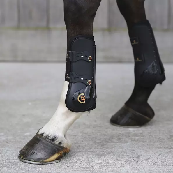 The boots also feature a higher cut out design than traditional tendon boots to allow total freedom of movement around the pastern area, when the horse is jumping. Consideration is also paid to give optimum freedom and comfort to the splint bone, so that horses are able to flex the knee without interference. The tendon boots feature an open front and the double elasticated insertion within the strap design has been developed to cater for those riders who want a boot, which offers the ultimate protection, yet features this more traditional design. The elastic closure makes it very easy to close these boots and adjust the size. These boots sustain the washing machine at 30°, no dryer. Use our Boots Cleaner to make them look shiny and brand new!