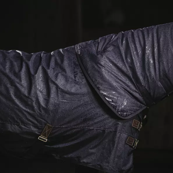 The texture of the artificial rabbit skin is so designed that it will always move back in place after rolling or laying down. The additional tail flap protects the horse’s tail against cold and wet weather. If you want extra protection, a separate neckpiece can be bought that matches the Hurricane rug. The neck comes in 0g or 150g and is easily detached to the rug with 2 strong hook and loop closures. The neckpiece is a bit longer on the wither part, so you don’t have to worry about rain seeping in.