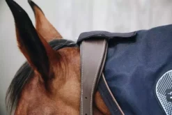 Preserving these fields stimulates blood circulation and oxygen flow. It also accelerates the recovery process in a natural protective environment. The neck is made out of a very strong mesh fabric which can be used both in the summer and in the winter. It’s ideal to use before and after riding to relax the horse’s muscles. It can easily be left on the horse overnight. We suggest using the neck one hour to start and gradually increase the number of hours on the horse over the next couple of days, so he can adapt to the tingling effect it can give. The neck piece can be attached to the rug with a simple clip. It also has two strong Velcro closures. It is machine washable at 30°, no dryer