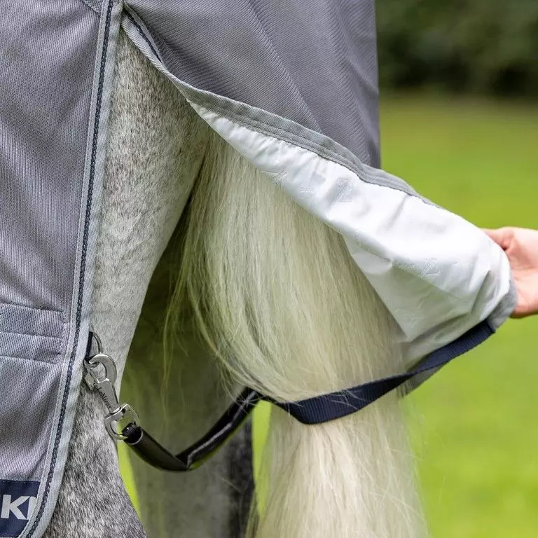 The extended shaped belly flap maximises coverage and features a three-strap closure with detachable central strap that helps to self-right the rug. The design registered angled front fastening system distributes pressure to prevent rubbing on the point of shoulder and across the chest