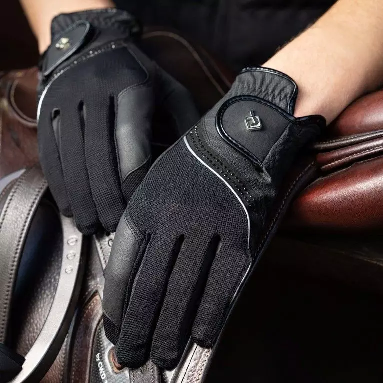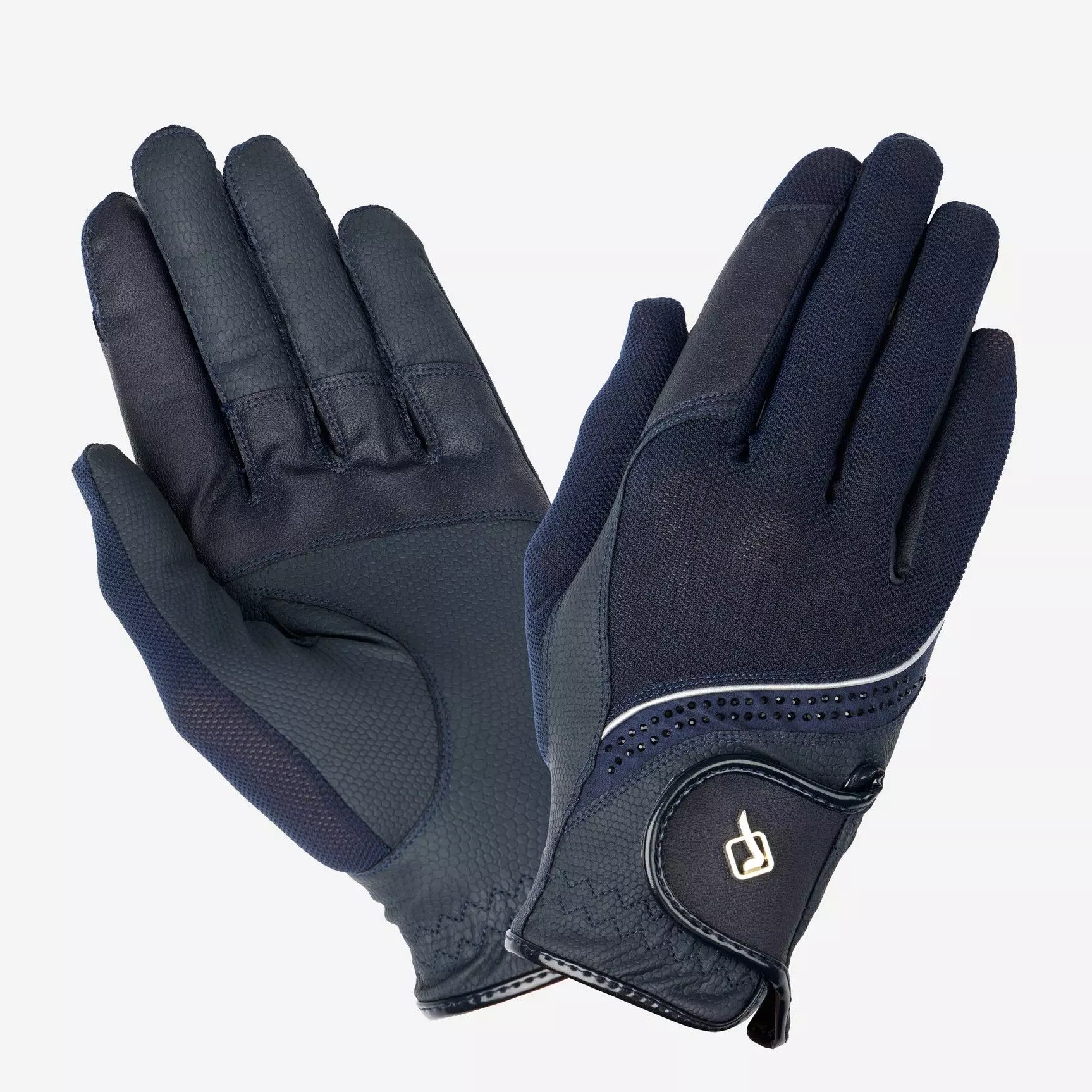 An eye-catching performance glove, with ultra-breathable mesh panel design and crystal diamante decoration.Â