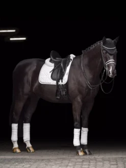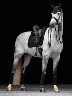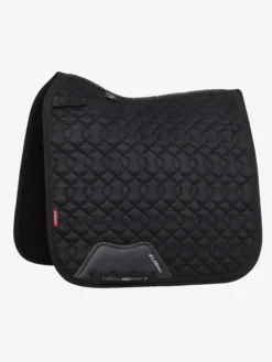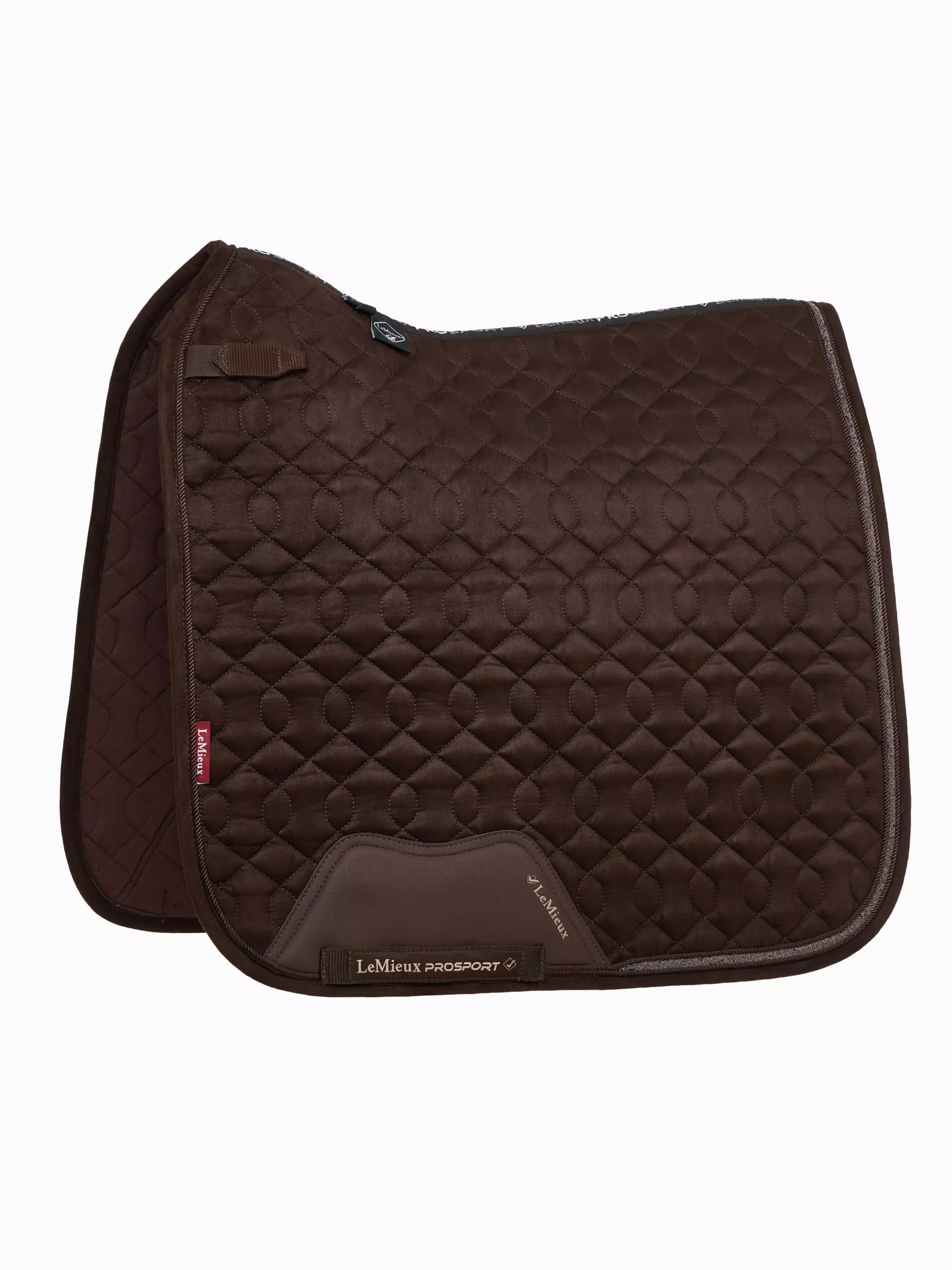 Featuring a luxuriously soft suede top and new sophisticated quilted pattern, the Crystal Suede Dressage Saddle Pad from LeMieux offers a sleek and professional look to your saddle. For an extra special touch, we’ve finished this pad with stunning sparkle and braided detail trims, creating a beautiful look that’s designed to stand out.Â