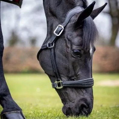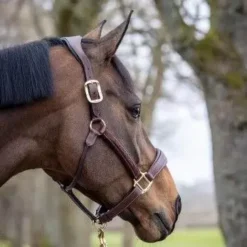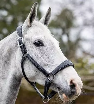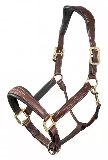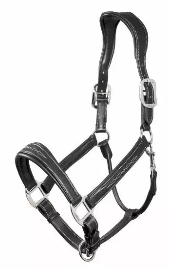 AÂ beautifully crafted, padded leather headcollar with elegant stitching detail for a classic look.