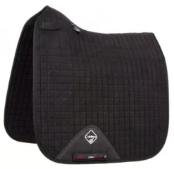 Now with our Super Soft Suede Binding & New PU Leather girth protection area, this beautiful suede Dressage square sets new standards in style & comfort. Now established as the iconic LeMieux look when combined with matching polo bandages and fly hoods there are colours to suit most horses and tastes. Designed to fit a wide range of dressage saddles with its high wither and elasticated D-Ring tabs . The luxurious suede top side with soft suede binding is complimented by a new super soft Bamboo lining to absorb & control sweat under the saddle and are beautifully comfortable and secure – minimising friction.
