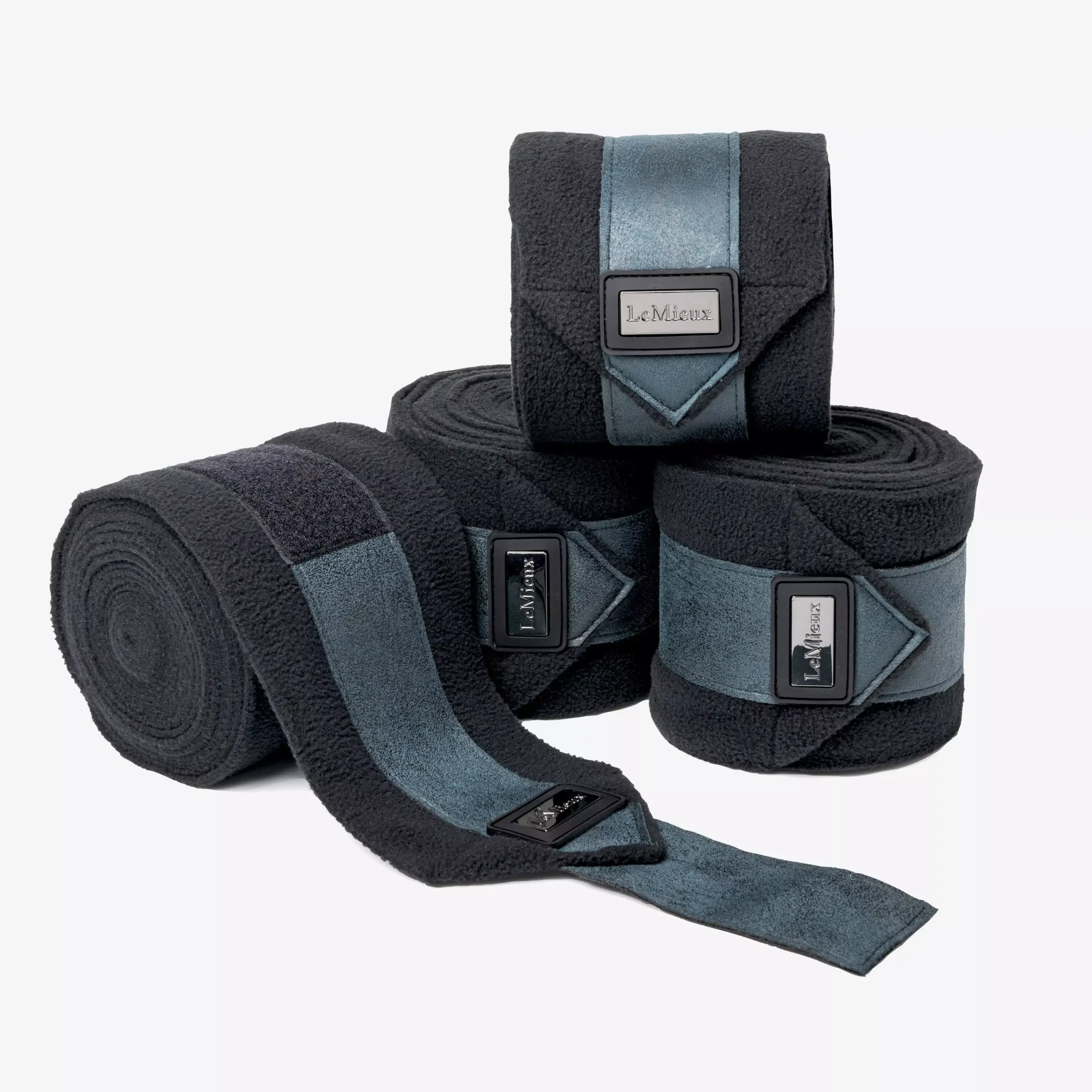 These beautiful fleece polo bandages have an antique suede effect end-detail that gives a subtle mottled look, and are finished with a gunmetal LeMieux embossed motifÂ