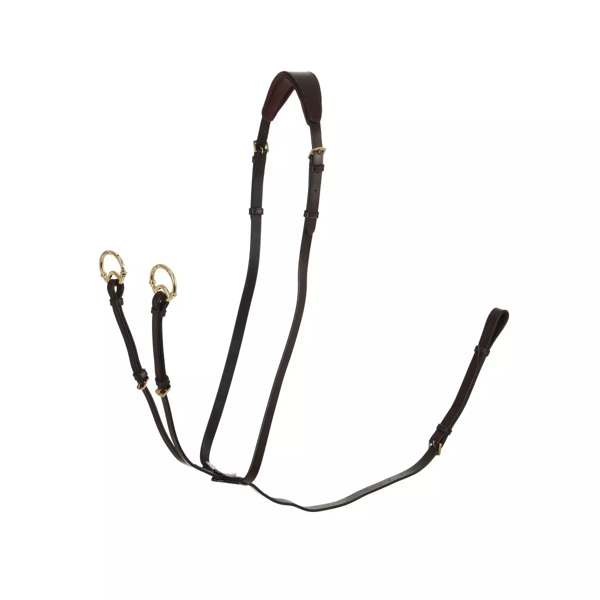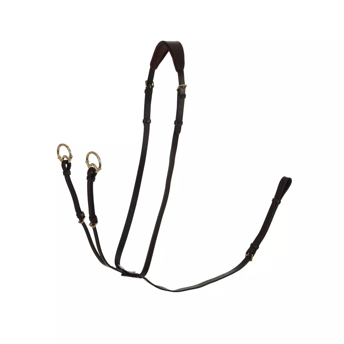 The LeMieux Running Martingale features an adjustable neck strap with padded top piece at the wither, along with custom designed martingale rings that clip on and off quickly and easily without the need to undo reins.Â