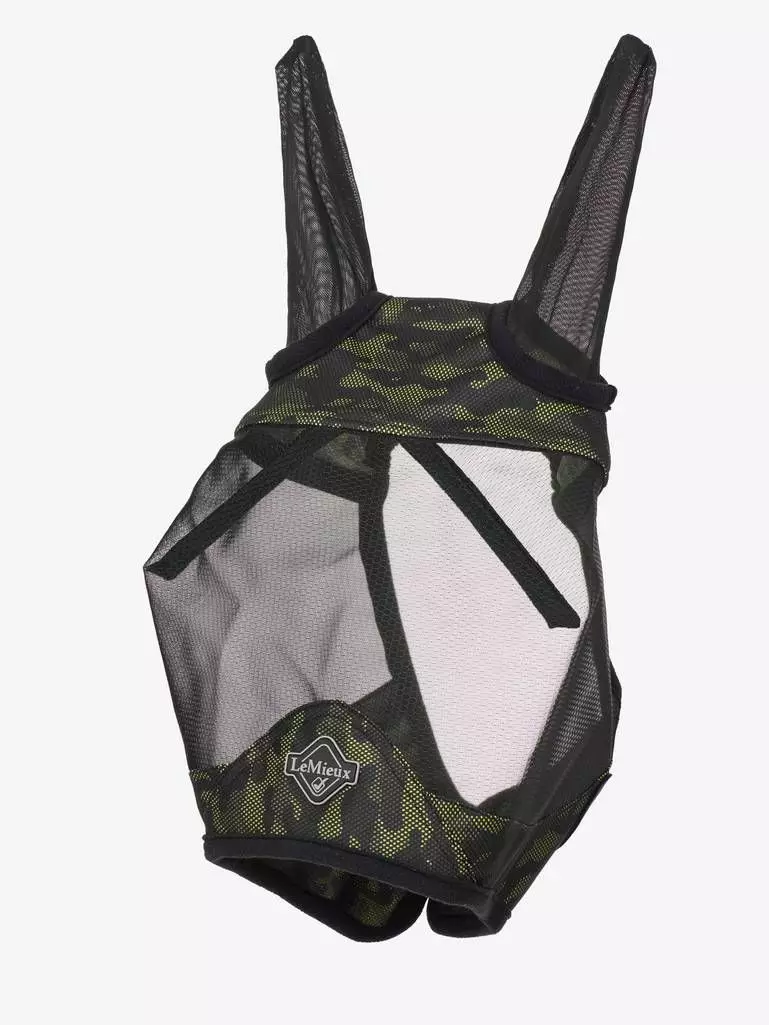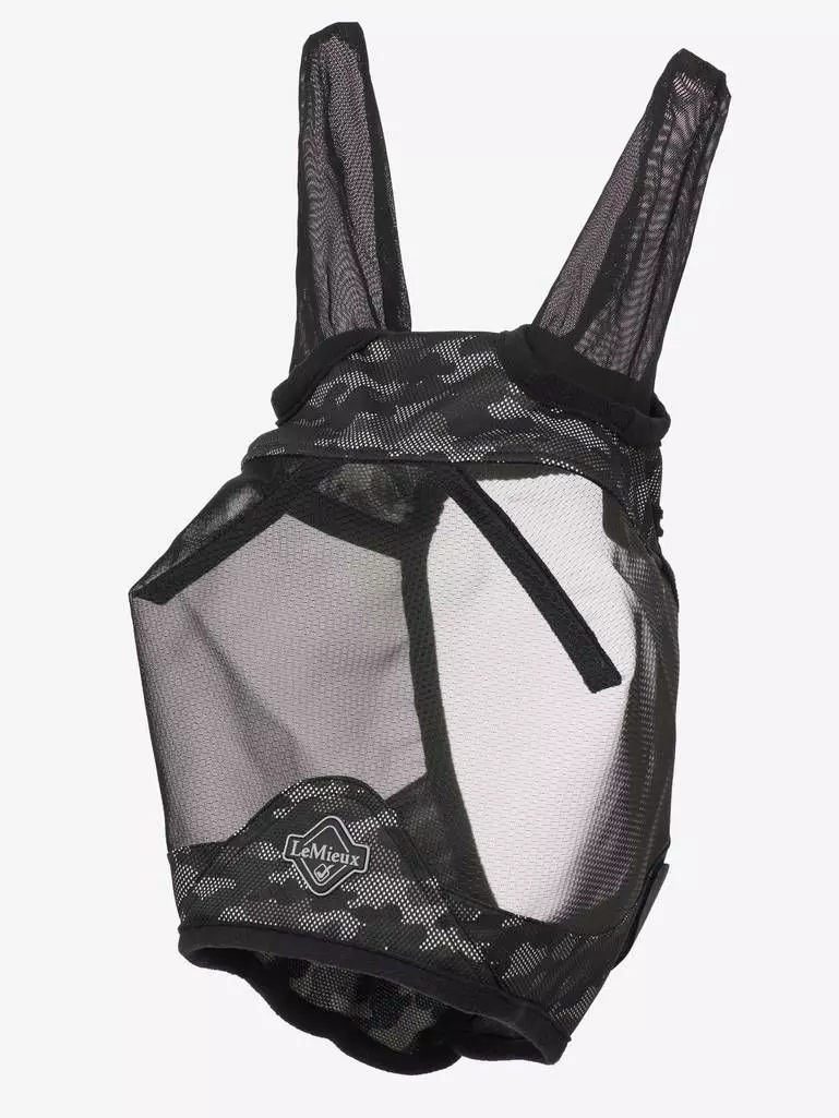 This helps to prevent rubbing & ensures clearance across eyes. The elasticated head piece & throat strap allows for close firm fit while maintaining comfort with a soft fleece edging. Breathable mesh ears prevent irritation from flies and midges.