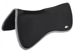 The carbon mesh spine insert ensures optimum wither relief and air flow as the pad’s high wither shape reduces pressure. Contrasting binding, metal motif and pu leather detail make this a very stylish half pad. Suitable for use with a variety of saddle models