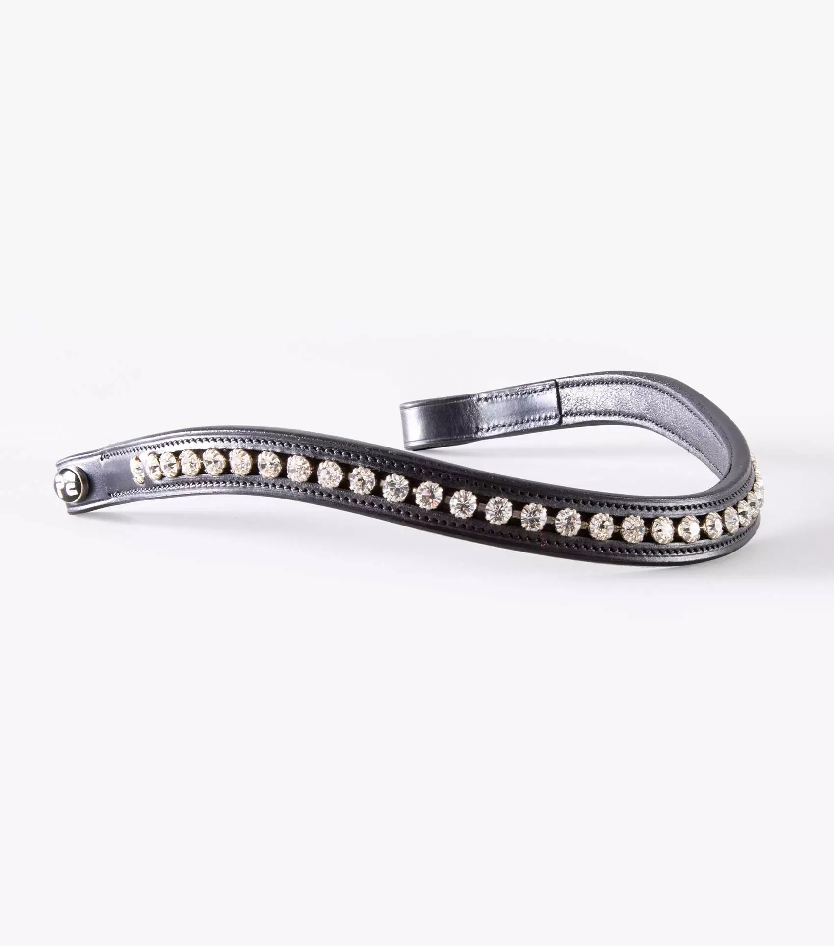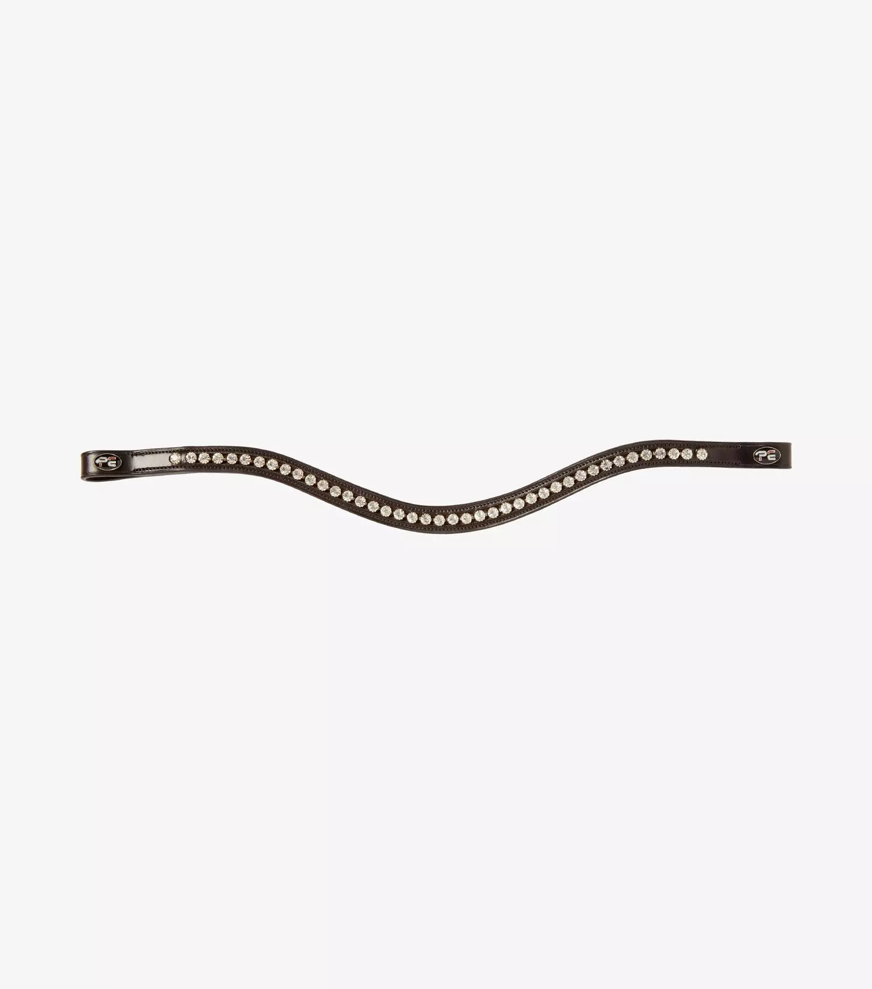 The Bellissima features a row of shimmering, circular diamantes backed on to finest quality Italian leather. A subtle, dipped shape helps highlight your horse’s face and creates a stunning silhouette. ‘PE’ branded brooches sit neatly at either end of the band providing a sleek and professional finish. This diamante browband offers show stopping style both at home and at competitions.