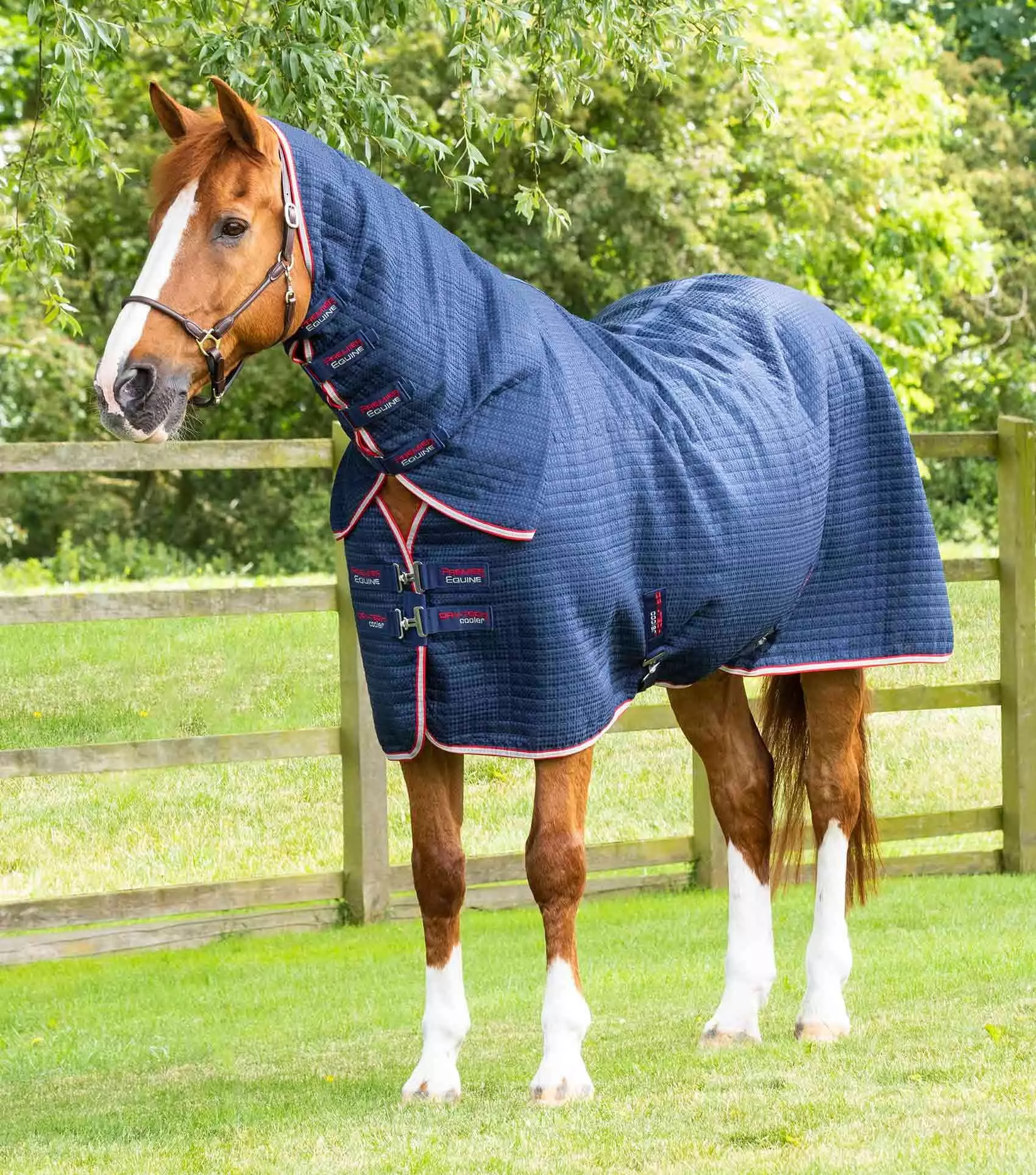 Combining innovation with tradition we have created a refined, top quality cooler that is suitable for a wide variety of uses. Constructed using three layers of technical fabrics, this rug is at the forefront of cooling technology. The lining is constructed using a lightweight waffle weave which is highly absorbent, durable and helps quickly wick away moisture from your horse’s coat. The middle layer contains a thermo bonded filling which is light, breathable and offers added protection from chills, it also helps draw and disperse moisture speeding up drying time. Our specially designed, quilted waffle weave outer provides a traditional, cosy aesthetic and helps prevent shavings from sticking to the surface of the rug when your horse is stabled. Complete with an integrated neck cover.