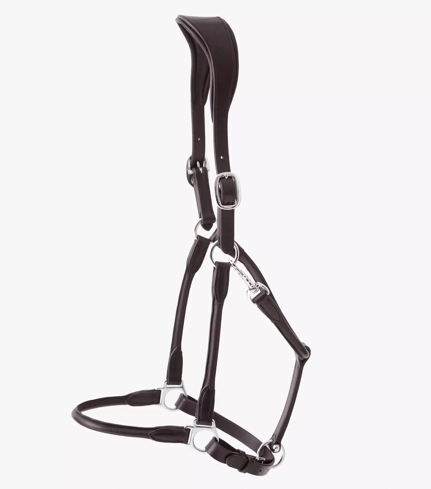 The Premier Equine Hennaroso Rolled Leather Head Collar features an anatomically shaped poll piece for enhanced comfort and a rolled leather noseband, cheek pieces and throat clip, this leather halter offers a premium refined aesthetic inspired by Argentinian tradition. A fully adjustable noseband features a buckle fastening and the ergonomic headpiece is adjustable from either side with buckle fastenings.