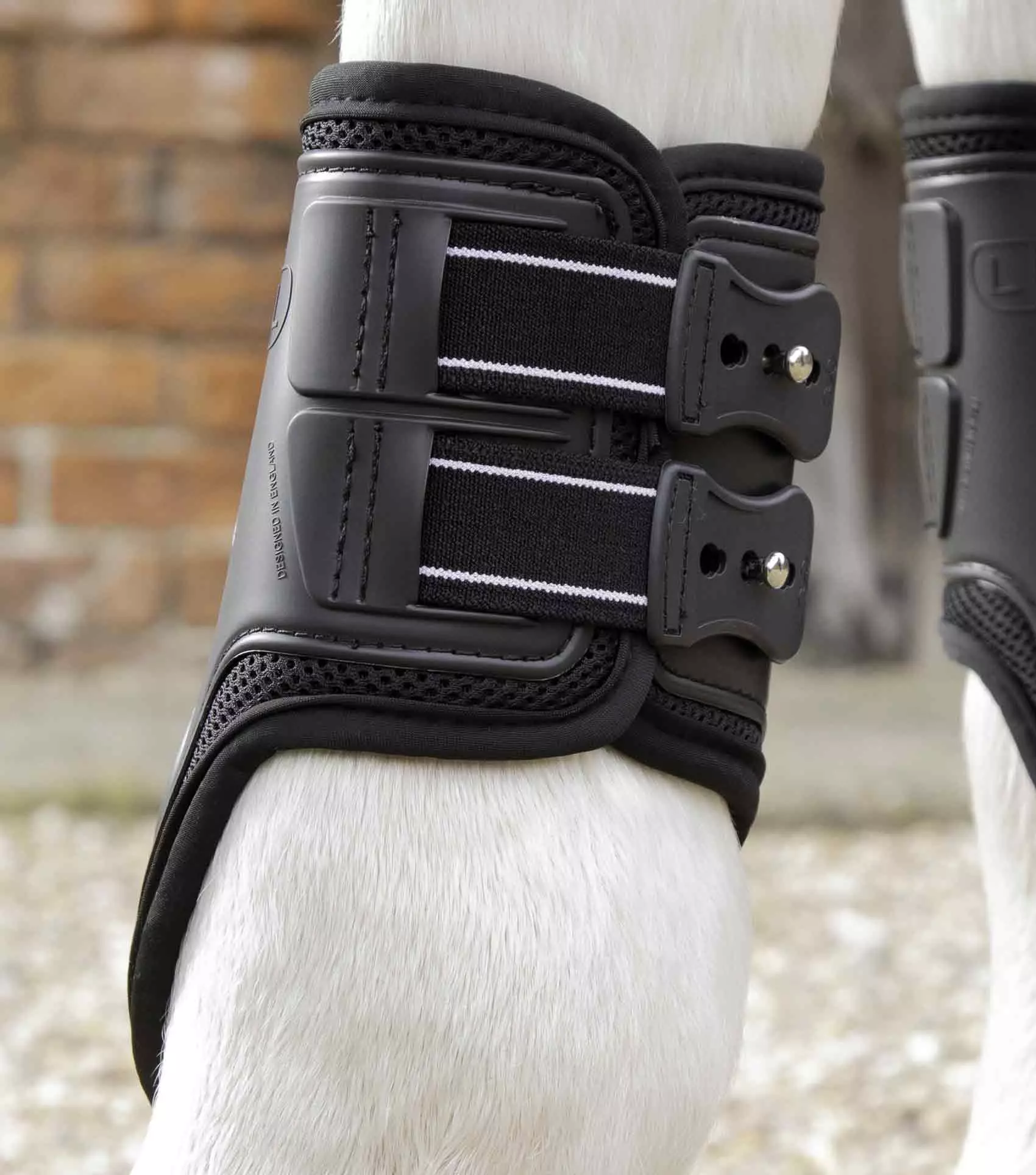 A double density shell provides outer protection whilst underneath this, layers of Kevlar and shockproof materials work together to minimise the effects of knocks or strikes. Engineered with Air-Tech ventilated neoprene on the inside to help prevent heat build-up in your horse’s legs. Combined with silicone air vents on the exterior and you for optimum breathability. A Flex tech zone has been incorporated for unrestricted movement and elastic straps with quick release clips allow for easy and quick removal.