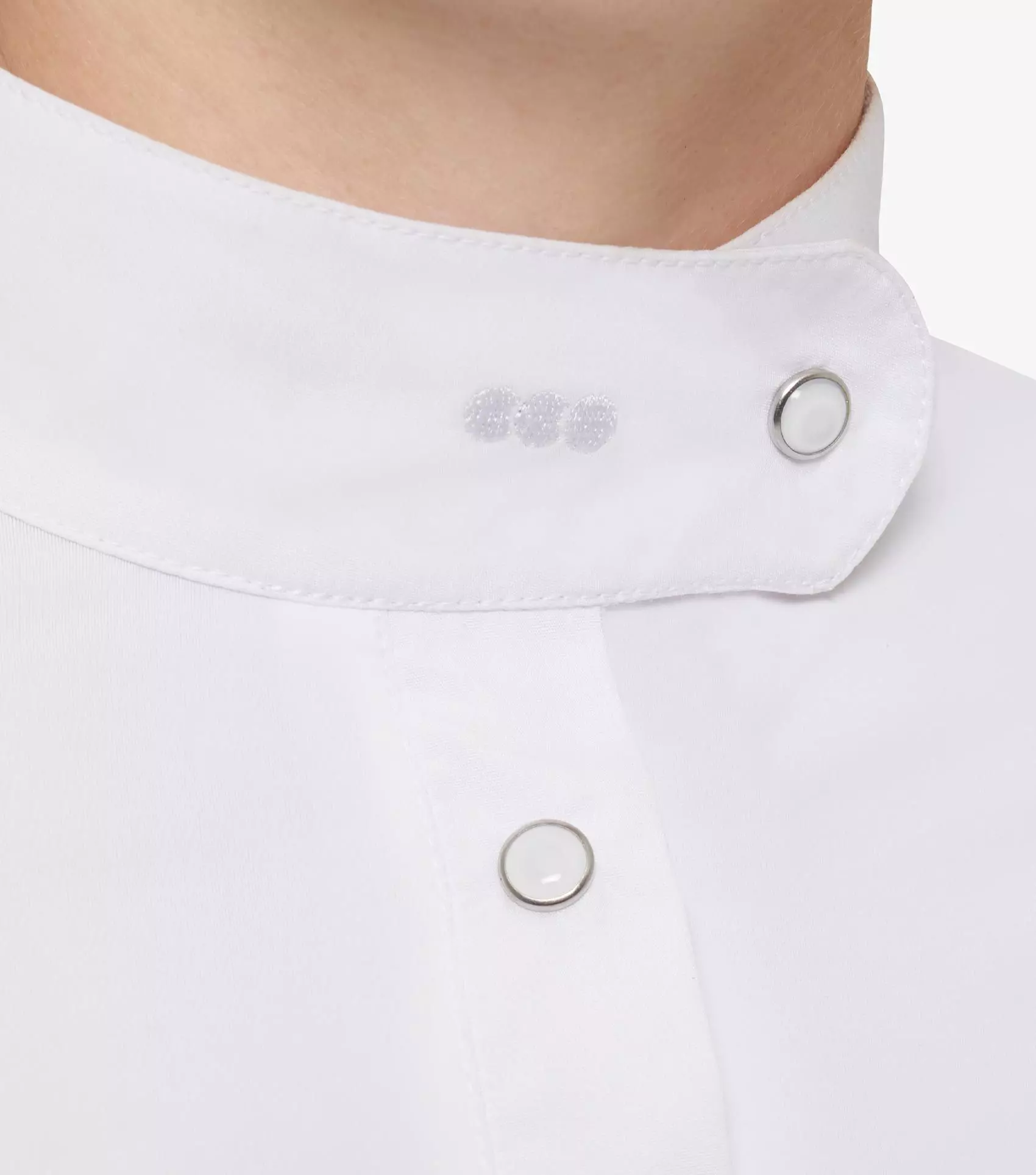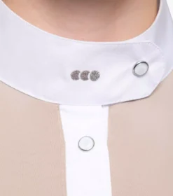 Finished with a stylish stand collar and pleated cuffs: both accented with subtle tonal PE branding, the Rossini Lycra Show Shirt is everything you need to complete your competition look.Â