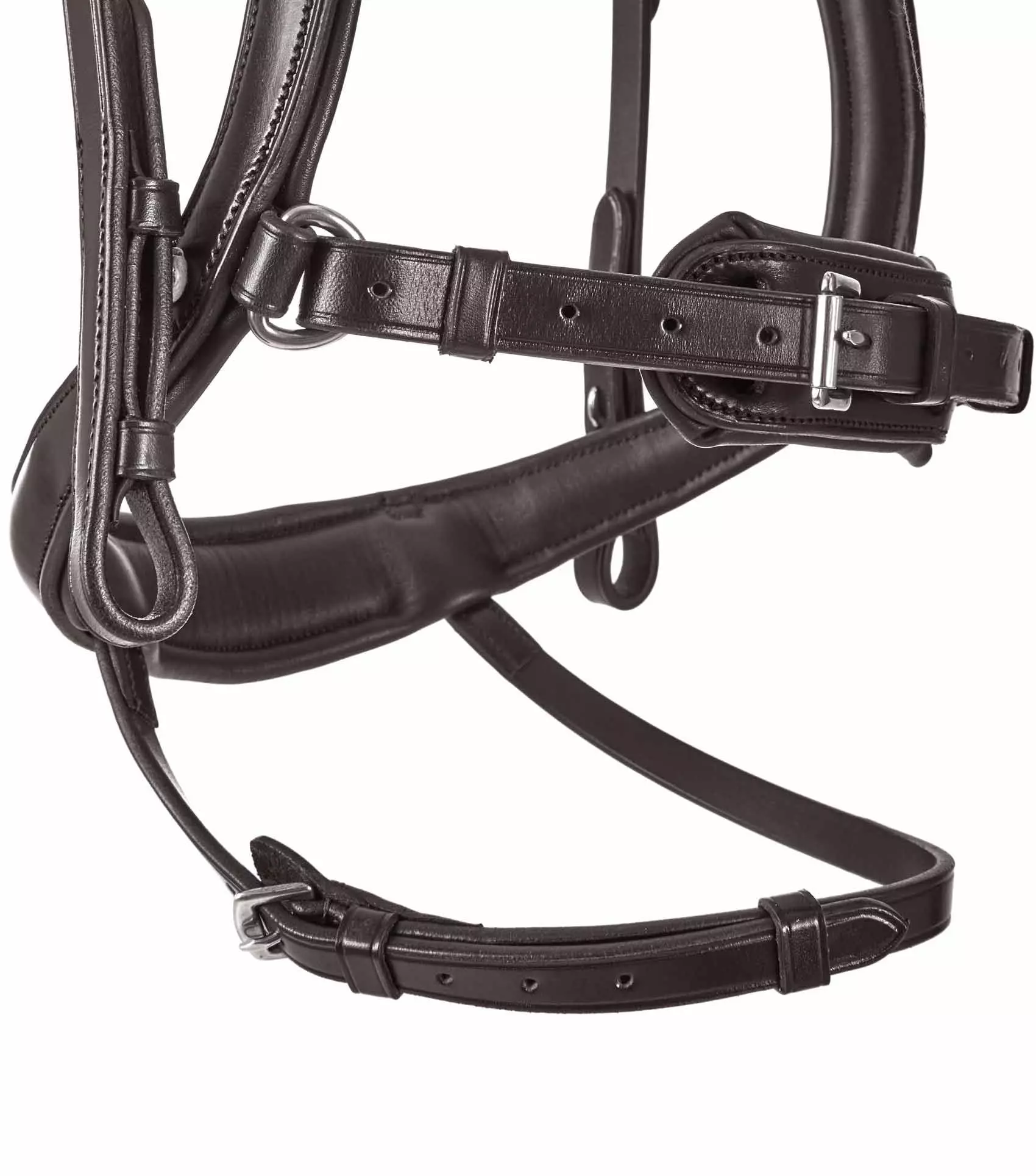 The innovative alignment features no traditional throat lash and a shaped, padded anatomical noseband prevents added pressure on the nasal bone and cranial nerves.