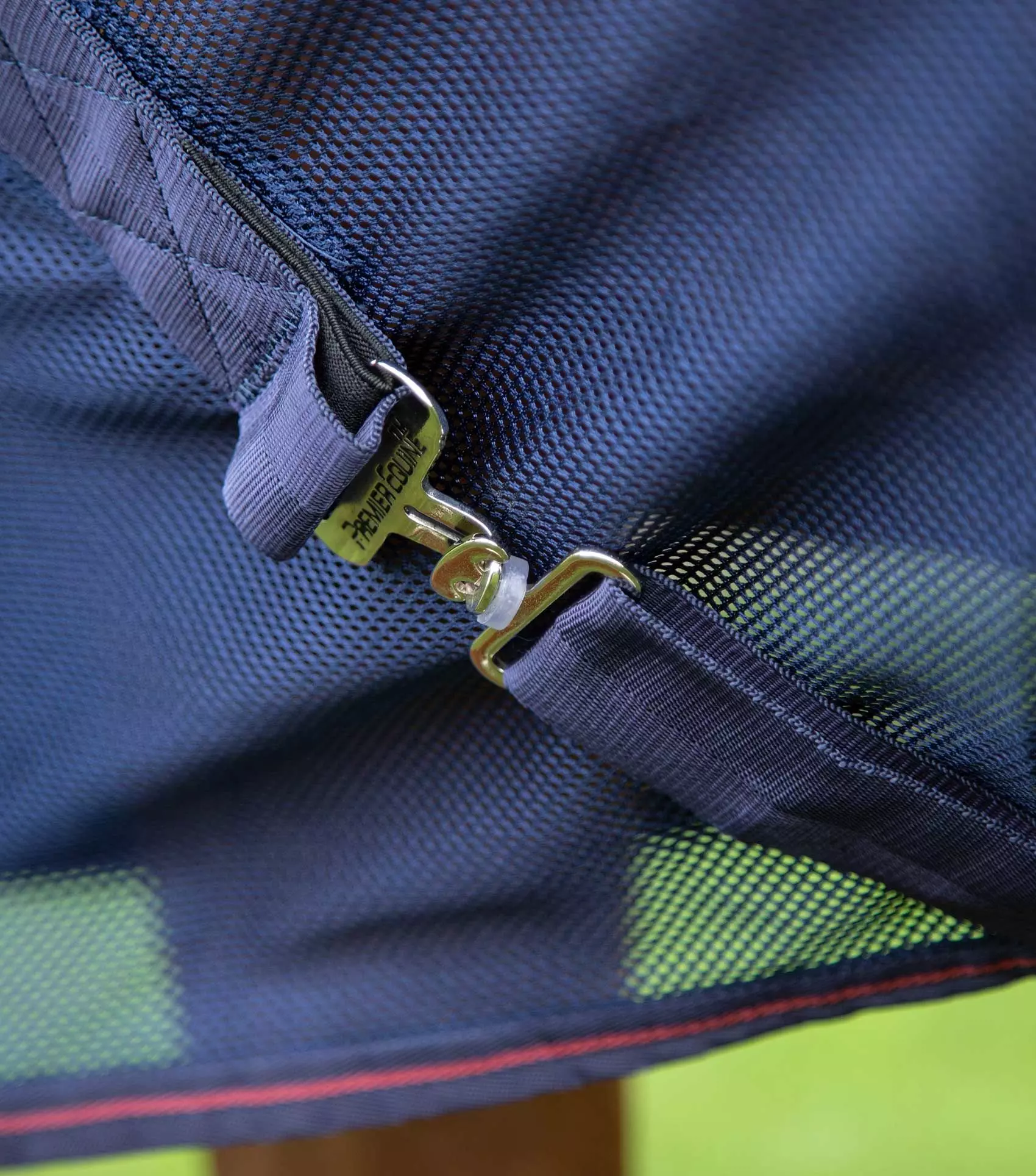 The technical function of this mesh cooler works on the basis of allowing the dispersion of warmth and the transportation of moisture while maximising breathability to aid drying. The Ventoso is a lightweight solution to cooling your horse in warm conditions, particularly effective after intense exercise/training, traditionally used in racing and high-octane equestrian sports. A cooler that aids in lowering the horse’s temperature while applying various cooling methods imperative to the horse’s wellbeing and after performance recovery.