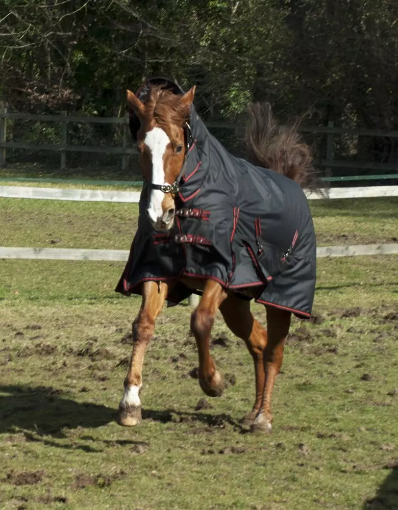 The rug features 1000 denier, waterproof breathable outer which is teflon coated for extra protection and wearability. making this rug perfect for the winter months. It has a heavyweight 350gsm polyfill with a breathable nylon lining. It is secured with double chest straps, cross-over surcingles, leg straps and features a  fixed neck cover with easy and quick loop through elastic / Velcro fastening.