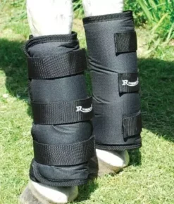 Set of 4 travel boots, tough waterproof nylon outer, padded fur lined for comfort and protection, wide Velcro fasten for secure fit.
