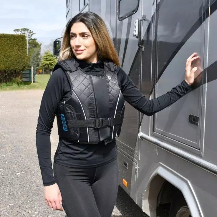 This Body protector is tested and approved to the Beta 2018 Body & Shoulder Protector Standard Level 3. Features smaller segments of padding than our standard body protectors to give a much more comfortable feel with greater flexibility and movement. It is also lighter in weight but without compromising on safety, has double touch tape fastening with coloured safety markers ensuring maximum closure and a front easy clip-in belt with elasticated straps for comfort. With a front zip to enable easy on/off once correct positioning of side panels is achieved.