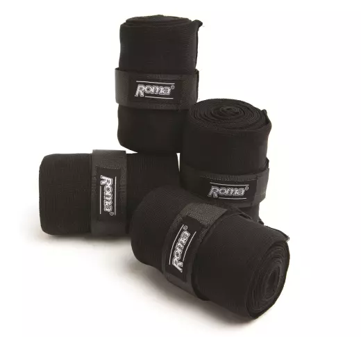 Roma Acrylic Stable Bandages (pack of 4). Knitted acrylic with touch tape fastenings. Available in a variety of colours. Ideal for in the stable or travelling.