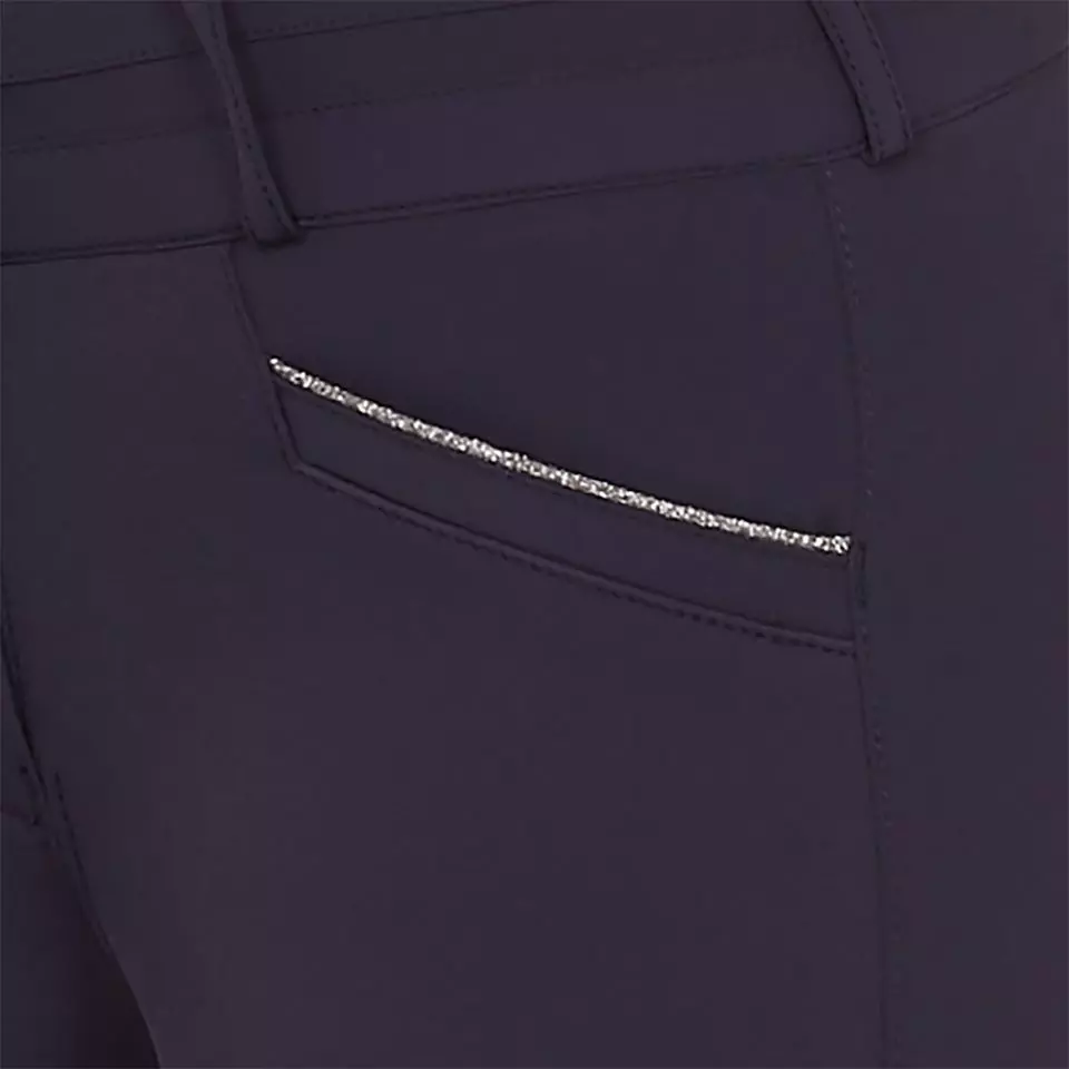 A feminine look give the summer breeches Summer Heather FS Style from Schockemöhle Sports. This is ensured, for example, by the decorative silicone print or the two sporty welt pockets with glittering piping at the front and back. The design is complemented by a decorative decorative seam on the waistband and a logo rhinestone motif on the left leg. The side cell phone pockets of the Summer Heather FS Style breeches prove to be practical. It is made of breathable material that dries quickly and at the same time has a shape-retaining effect.