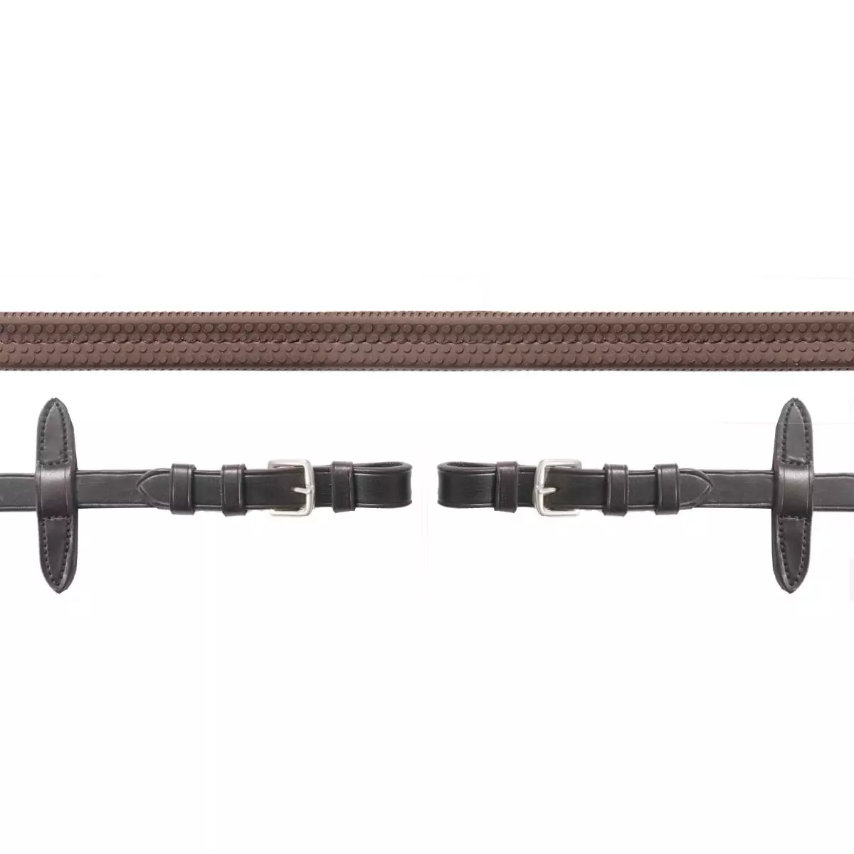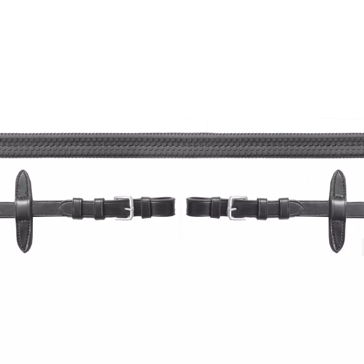 Schockemohle Premium Rubber Reins with Buckles Simple RUBBER REINS with buckles and medium width of 17 mm. The reins lie well in your hands and are fitted with martingale stops.