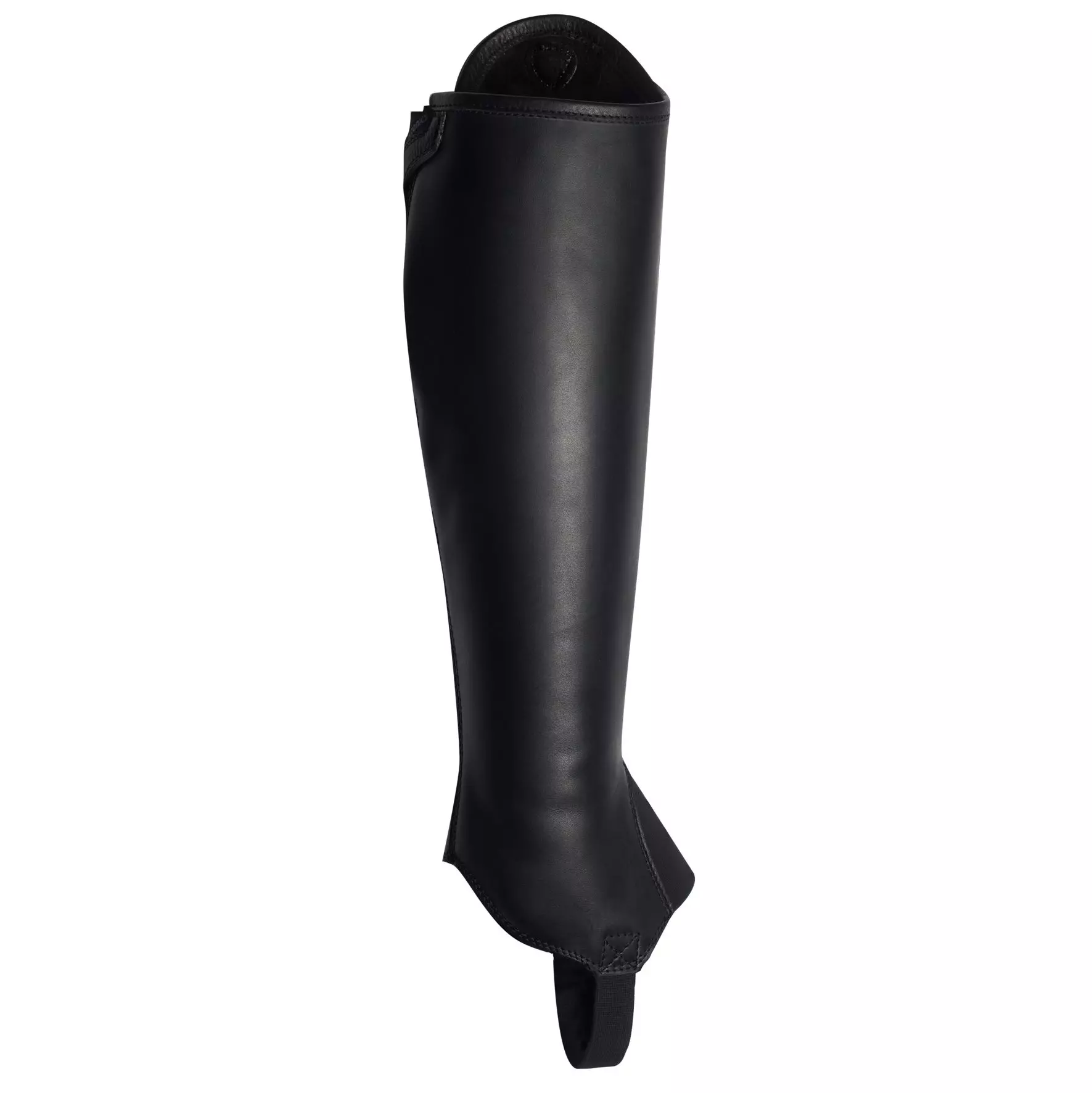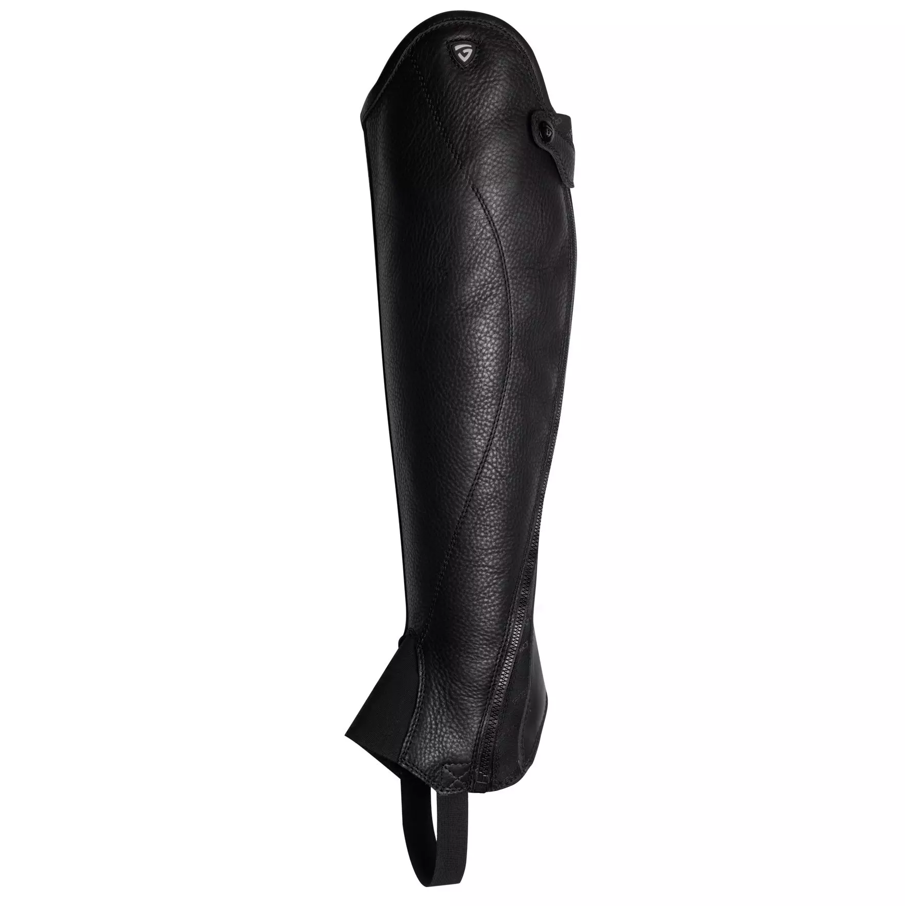 Training chaps to fall in love with: “SIRIUS” convinces with a perfect anatomical shape and very soft grain leather, which complements perfectly with an elastic insert: The chaps fi t like a second skin against the rider’s legs.